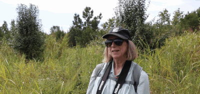 NFLT board member Dr. Janice Chism at a restored prairie—one of many landscapes protected through the Land Trust’s conservation efforts.